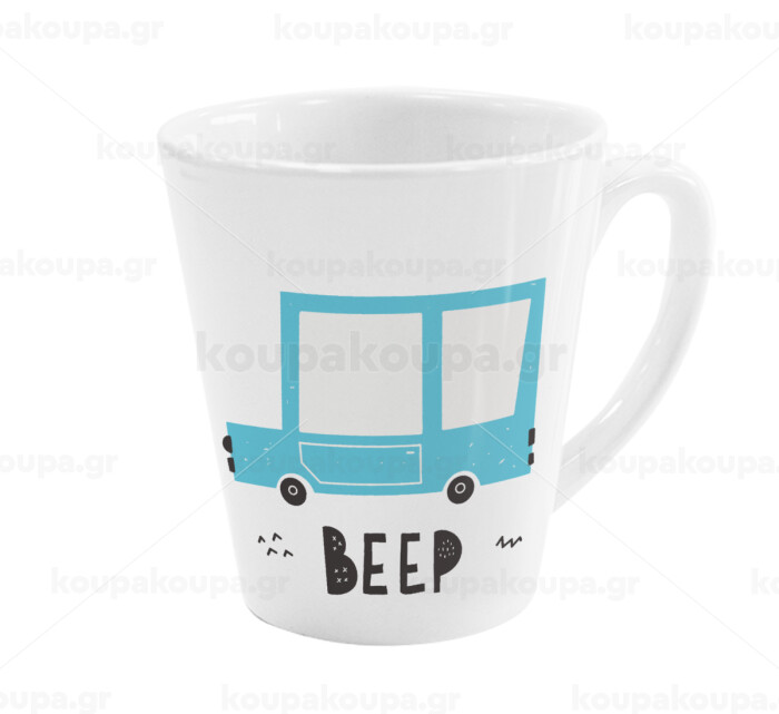 Car BEEP..., Κούπα κωνική Latte Λευκή, κεραμική, 300ml