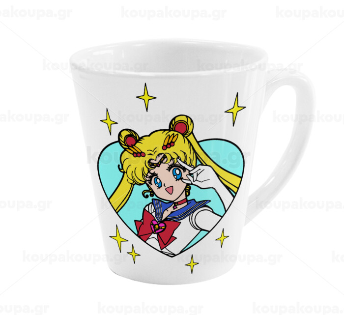 Sailor Moon star, Κούπα κωνική Latte Λευκή, κεραμική, 300ml
