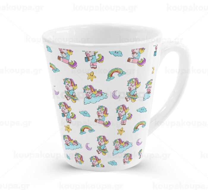 Unicorn pattern, Κούπα κωνική Latte Λευκή, κεραμική, 300ml