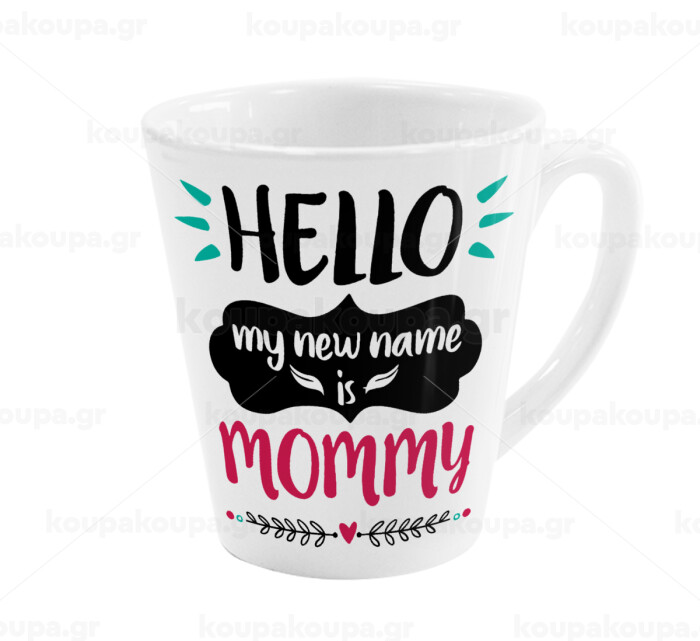 Hello, my new name is Mommy, Κούπα κωνική Latte Λευκή, κεραμική, 300ml
