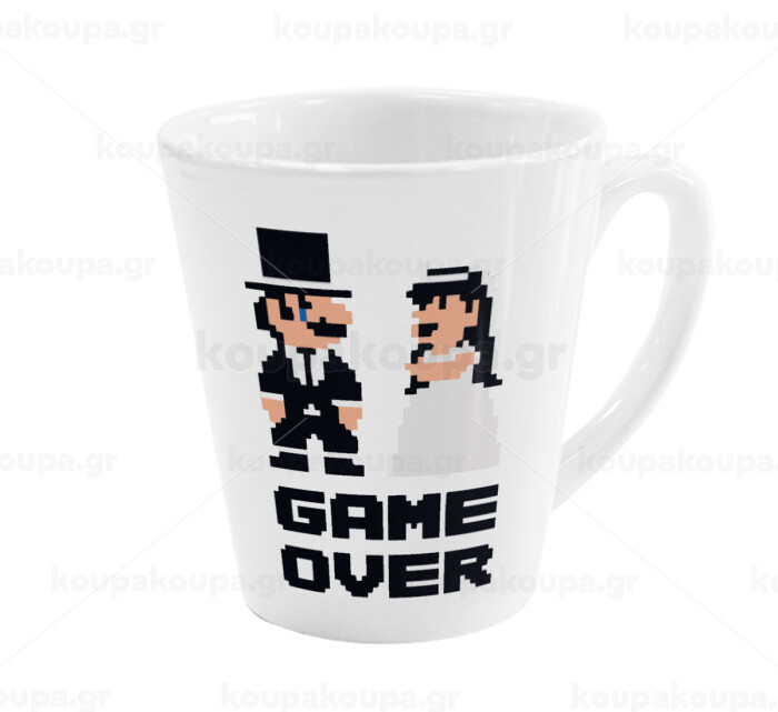 8bit Game Over Couple Wedding, Κούπα κωνική Latte Λευκή, κεραμική, 300ml