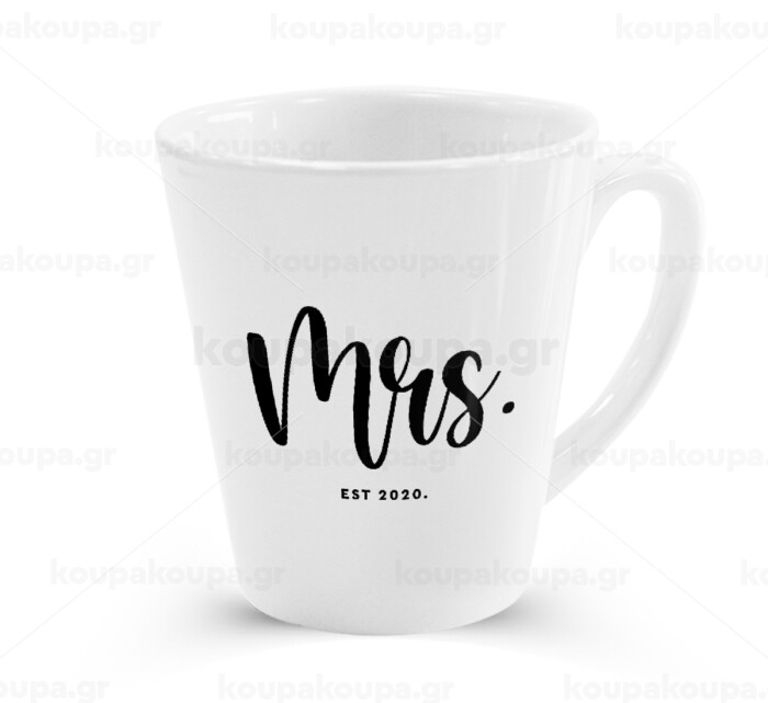 Mr & Mrs (Mrs), Κούπα κωνική Latte Λευκή, κεραμική, 300ml