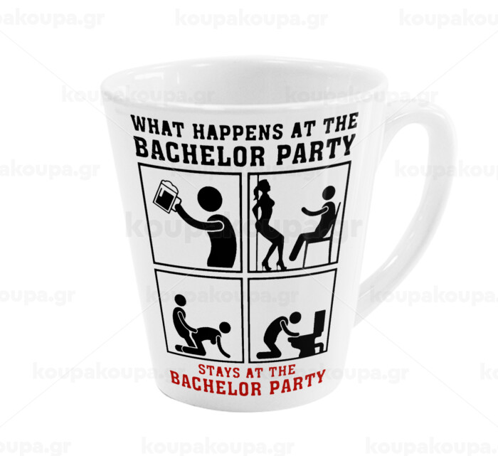 What happens at the bachelor party, stays at the bachelor party!, Κούπα κωνική Latte Λευκή, κεραμική, 300ml