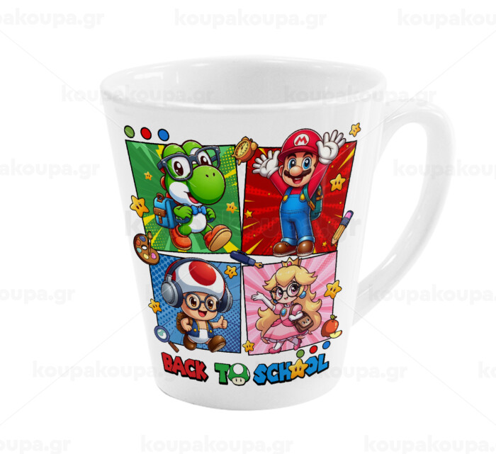 Back to the School Mario & Friends, Κούπα κωνική Latte Λευκή, κεραμική, 300ml