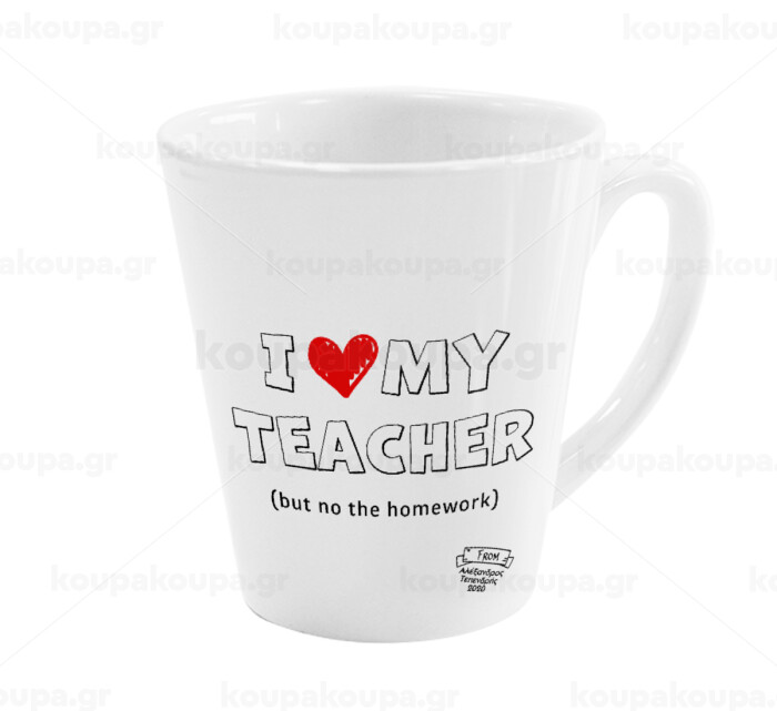 i love my teacher but no the homework outline, Κούπα κωνική Latte Λευκή, κεραμική, 300ml