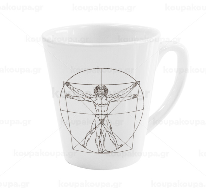 Leonardo da vinci Vitruvian Man, Κούπα κωνική Latte Λευκή, κεραμική, 300ml