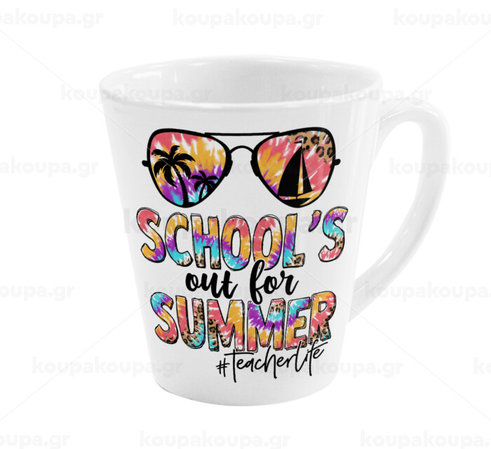 School's Out For Summer Teacher Life, Κούπα κωνική Latte Λευκή, κεραμική, 300ml