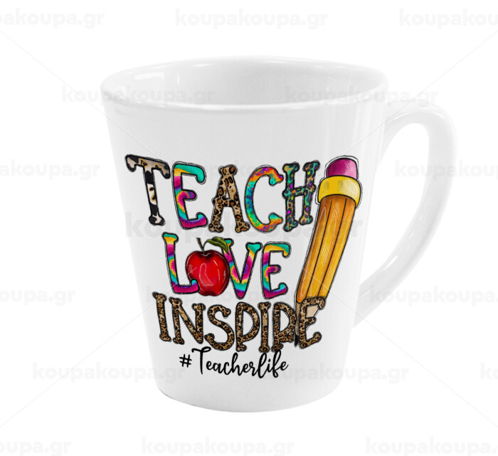 Teach, Love, Inspire, Κούπα κωνική Latte Λευκή, κεραμική, 300ml