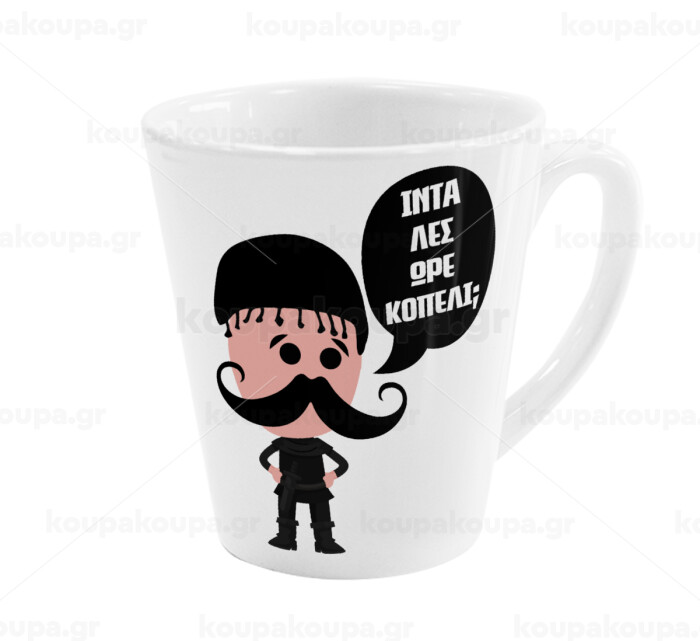 Κρητικός "Ίντα λες ωρέ κοπέλι", Κούπα κωνική Latte Λευκή, κεραμική, 300ml