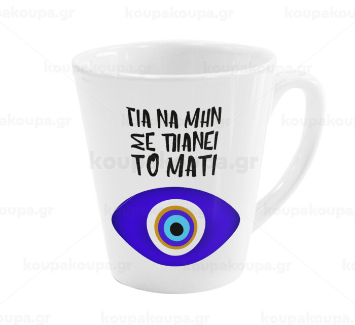 Για να μην σε πιάνει το μάτι, Κούπα κωνική Latte Λευκή, κεραμική, 300ml