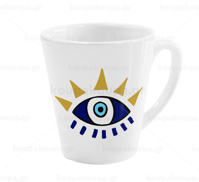 blue evil eye, Κούπα κωνική Latte Λευκή, κεραμική, 300ml