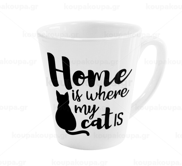 Home is where my cat is!, Κούπα κωνική Latte Λευκή, κεραμική, 300ml