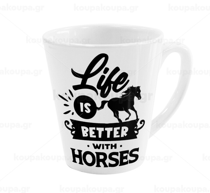 Life is Better with a Horses, Κούπα κωνική Latte Λευκή, κεραμική, 300ml