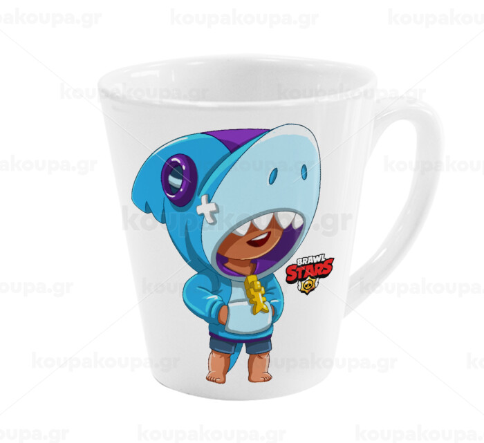 Brawl Stars Leon Shark, Κούπα κωνική Latte Λευκή, κεραμική, 300ml