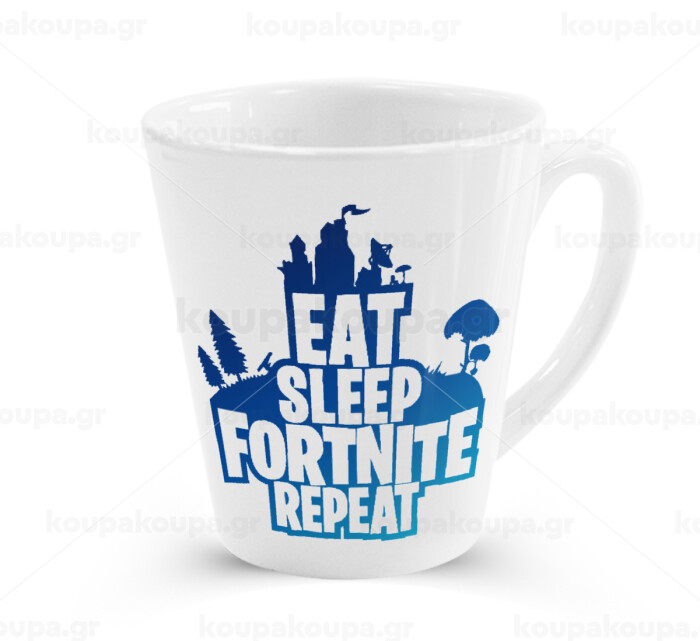 Eat Sleep Fortnite Repeat, Κούπα κωνική Latte Λευκή, κεραμική, 300ml