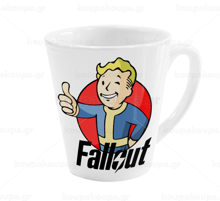 Fallout Vault Boy, Κούπα κωνική Latte Λευκή, κεραμική, 300ml