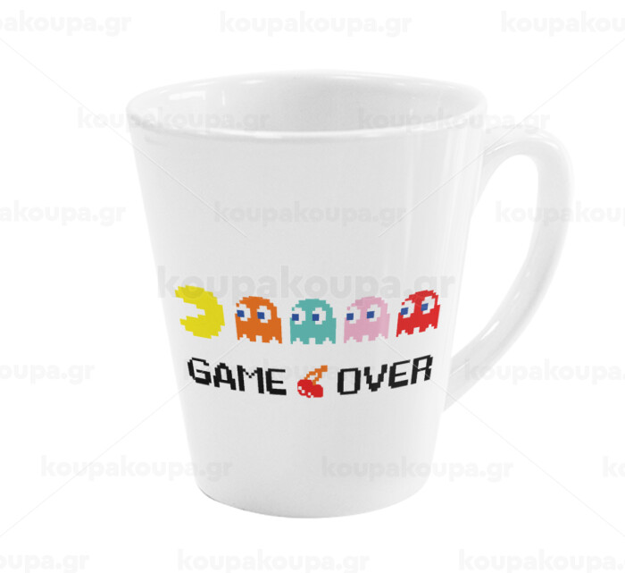 GAME OVER pac-man, Κούπα κωνική Latte Λευκή, κεραμική, 300ml