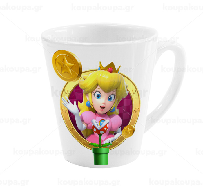Princess Peach Toadstool, Κούπα κωνική Latte Λευκή, κεραμική, 300ml