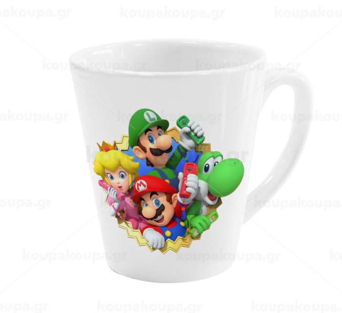 Super mario and Friends, Κούπα κωνική Latte Λευκή, κεραμική, 300ml