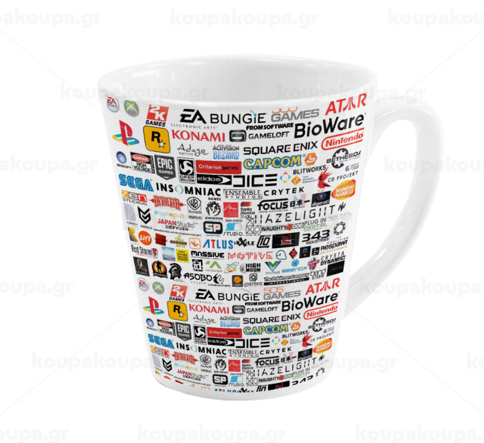 Video Game Studio Logos, Κούπα κωνική Latte Λευκή, κεραμική, 300ml