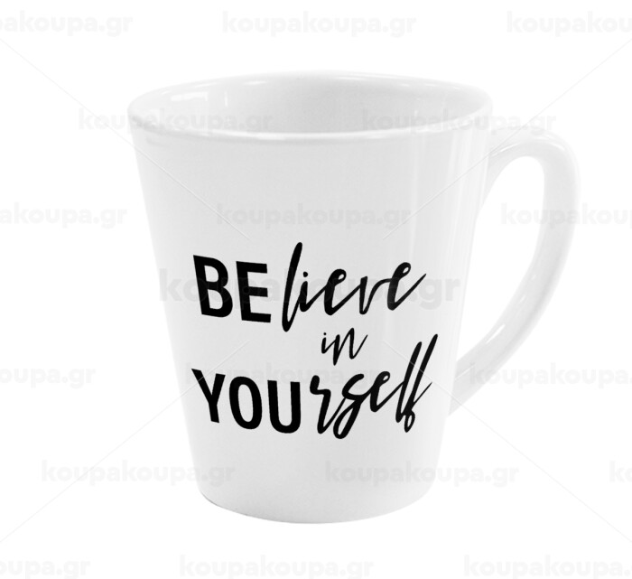 Believe in your self, Κούπα κωνική Latte Λευκή, κεραμική, 300ml