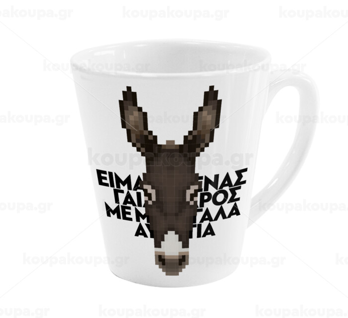 Είμαι ένας γάιδαρος με μεγάλα αυτιά., Κούπα κωνική Latte Λευκή, κεραμική, 300ml