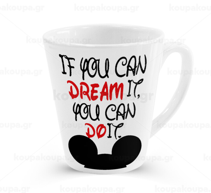 If you can dream it, you can do it, Κούπα κωνική Latte Λευκή, κεραμική, 300ml