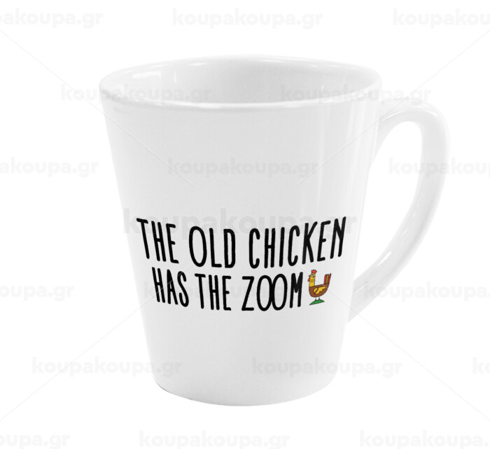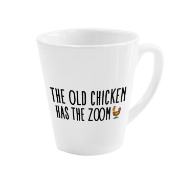 The old chicken has the zoom, Κούπα κωνική Latte Λευκή, κεραμική, 300ml