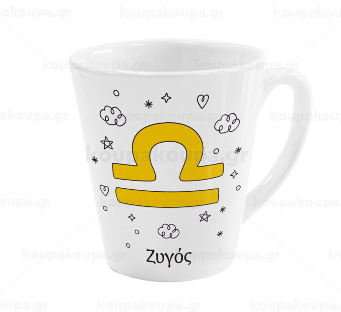 Ζώδια Ζυγός, Κούπα κωνική Latte Λευκή, κεραμική, 300ml