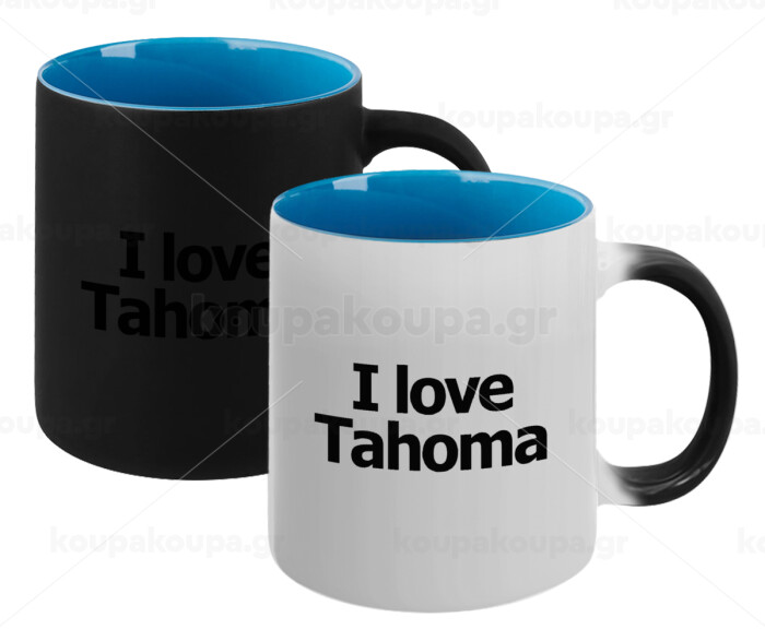 I love Tahoma, Κούπα Μαγική εσωτερικό μπλε, κεραμική 330ml που αλλάζει χρώμα με το ζεστό ρόφημα