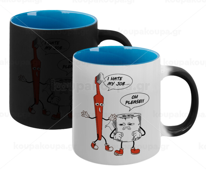 I hate my job, Κούπα Μαγική εσωτερικό μπλε, κεραμική 330ml που αλλάζει χρώμα με το ζεστό ρόφημα