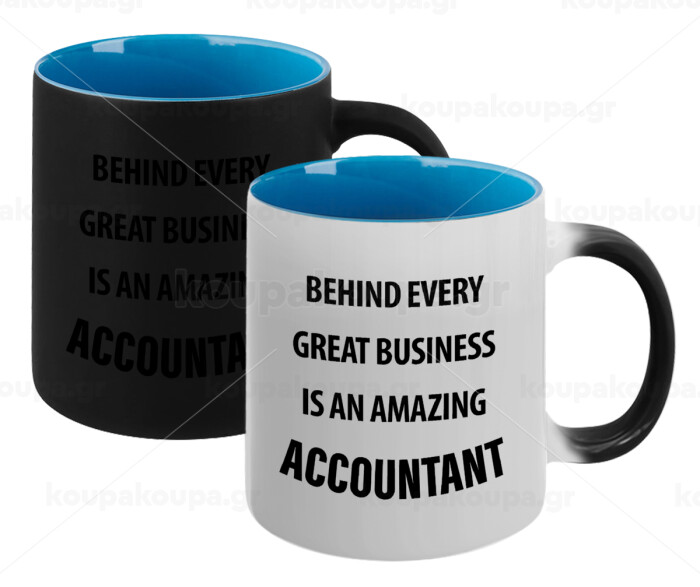 Behind every great business, Κούπα Μαγική εσωτερικό μπλε, κεραμική 330ml που αλλάζει χρώμα με το ζεστό ρόφημα