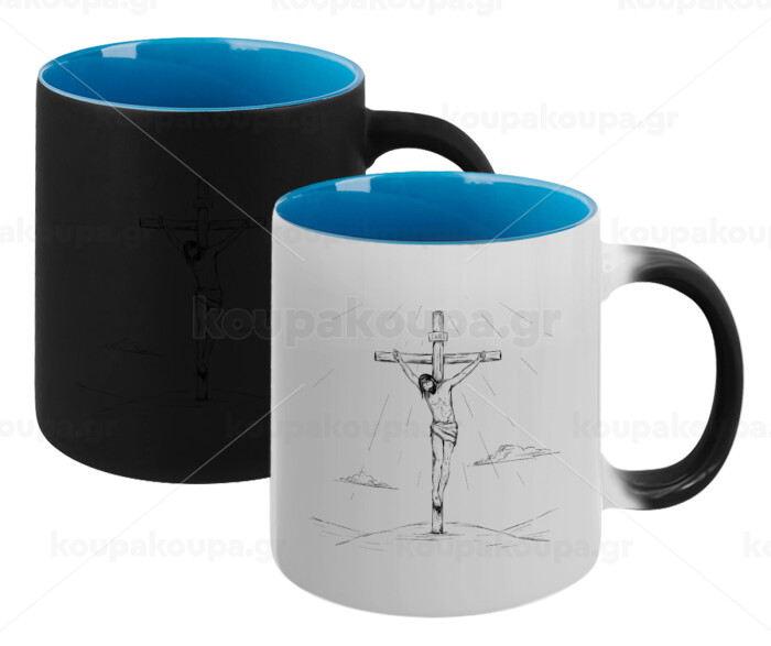 Jesus Christ , Κούπα Μαγική εσωτερικό μπλε, κεραμική 330ml που αλλάζει χρώμα με το ζεστό ρόφημα
