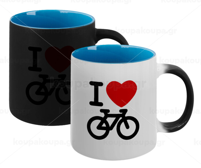 I love Bike, Κούπα Μαγική εσωτερικό μπλε, κεραμική 330ml που αλλάζει χρώμα με το ζεστό ρόφημα