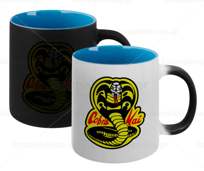 Cobra Kai Yellow, Κούπα Μαγική εσωτερικό μπλε, κεραμική 330ml που αλλάζει χρώμα με το ζεστό ρόφημα