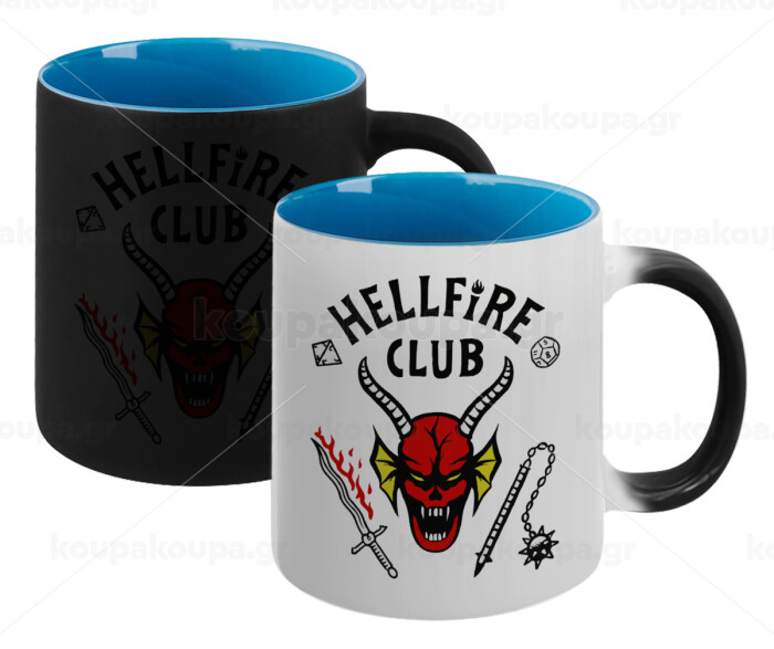 Hellfire CLub, Stranger Things, Κούπα Μαγική εσωτερικό μπλε, κεραμική 330ml που αλλάζει χρώμα με το ζεστό ρόφημα