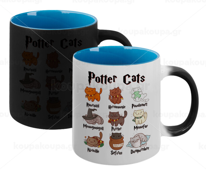 Potter Cats, Κούπα Μαγική εσωτερικό μπλε, κεραμική 330ml που αλλάζει χρώμα με το ζεστό ρόφημα