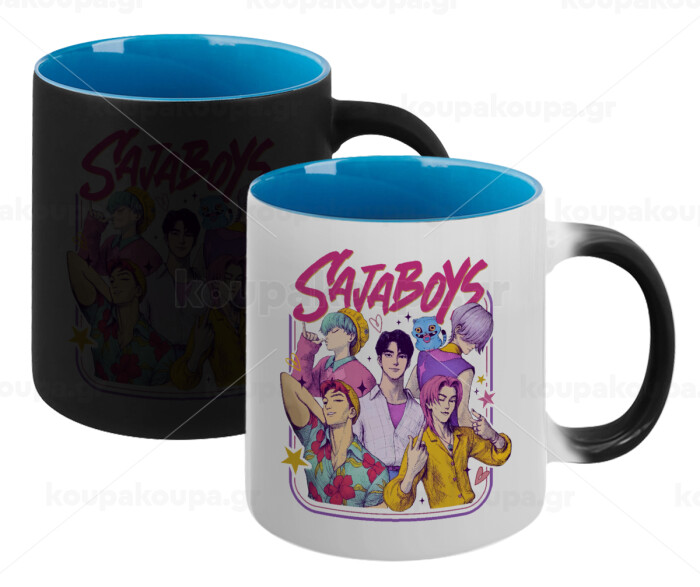 Huntrix Saja Boys, Κούπα Μαγική εσωτερικό μπλε, κεραμική 330ml που αλλάζει χρώμα με το ζεστό ρόφημα