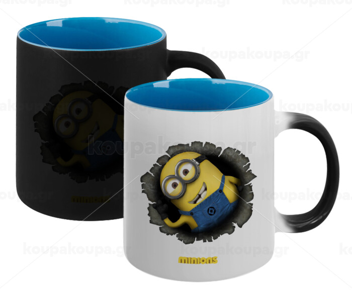 Minions hi, Κούπα Μαγική εσωτερικό μπλε, κεραμική 330ml που αλλάζει χρώμα με το ζεστό ρόφημα