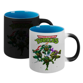 Ninja turtles, Κούπα Μαγική εσωτερικό μπλε, κεραμική 330ml που αλλάζει χρώμα με το ζεστό ρόφημα