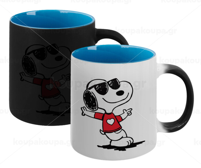 Snoopy καρδούλα, Κούπα Μαγική εσωτερικό μπλε, κεραμική 330ml που αλλάζει χρώμα με το ζεστό ρόφημα