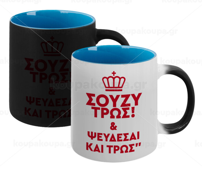 Σούζυ και ψεύδεσαι και τρως, Κούπα Μαγική εσωτερικό μπλε, κεραμική 330ml που αλλάζει χρώμα με το ζεστό ρόφημα