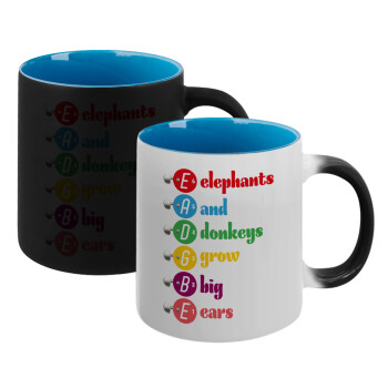 Elephants And Donkeys Grow Big Ears, Κούπα Μαγική εσωτερικό μπλε, κεραμική 330ml που αλλάζει χρώμα με το ζεστό ρόφημα