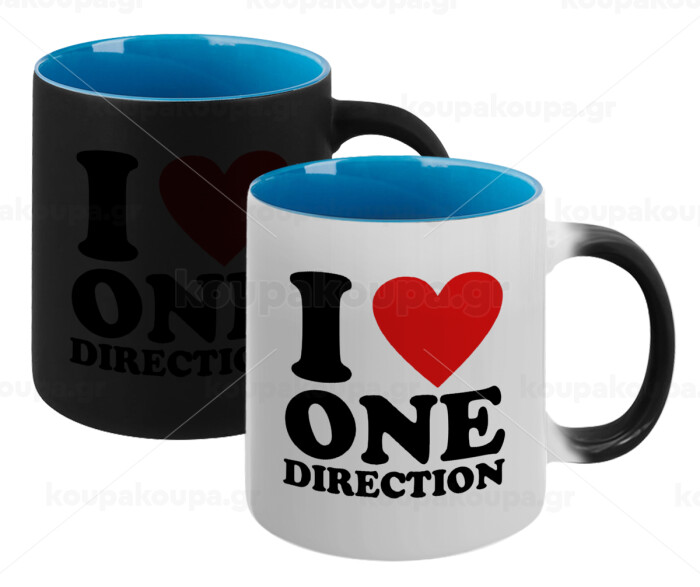 I Love, One Direction, Κούπα Μαγική εσωτερικό μπλε, κεραμική 330ml που αλλάζει χρώμα με το ζεστό ρόφημα