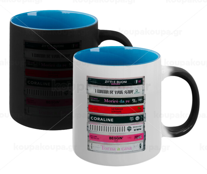 Maneskin Cassette, Κούπα Μαγική εσωτερικό μπλε, κεραμική 330ml που αλλάζει χρώμα με το ζεστό ρόφημα