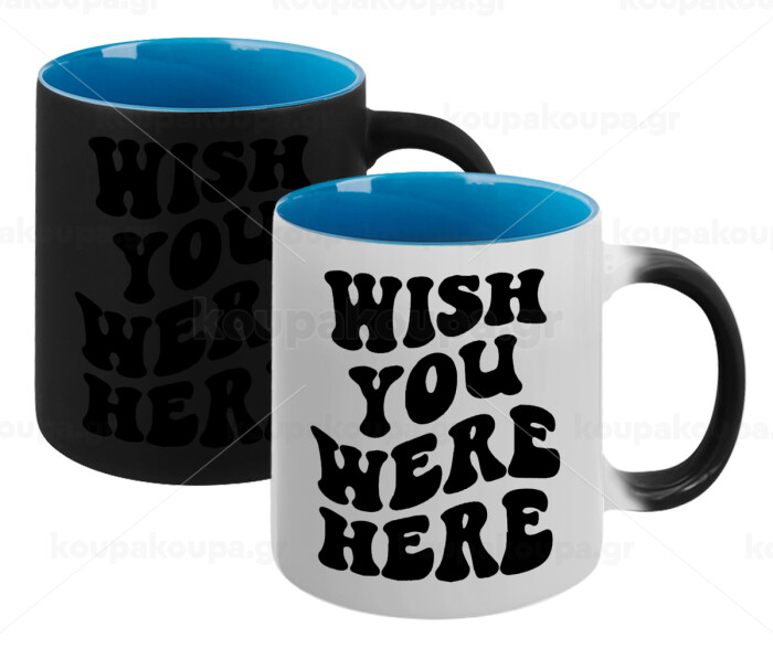 Wish you were here, Κούπα Μαγική εσωτερικό μπλε, κεραμική 330ml που αλλάζει χρώμα με το ζεστό ρόφημα