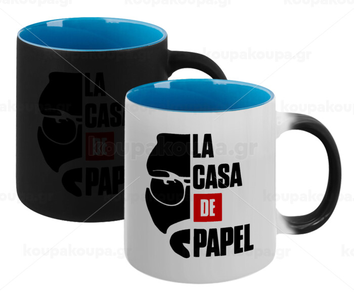 La casa de papel, Κούπα Μαγική εσωτερικό μπλε, κεραμική 330ml που αλλάζει χρώμα με το ζεστό ρόφημα