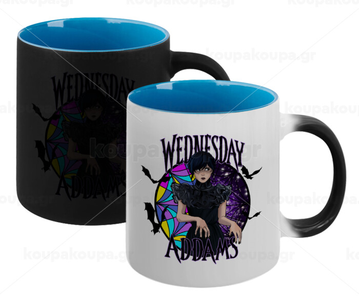 Wednesday Jenna Ortega, Κούπα Μαγική εσωτερικό μπλε, κεραμική 330ml που αλλάζει χρώμα με το ζεστό ρόφημα