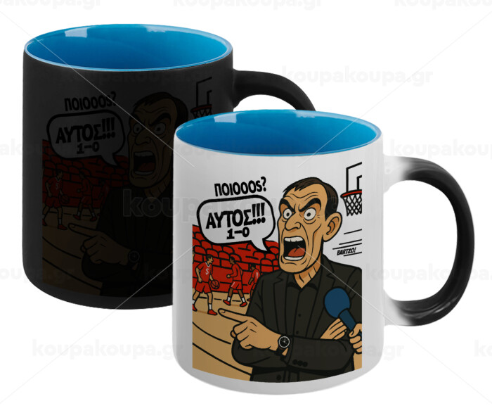 Μπαρτζό, Ποιος? Αυτός!!! 1-0, Κούπα Μαγική εσωτερικό μπλε, κεραμική 330ml που αλλάζει χρώμα με το ζεστό ρόφημα