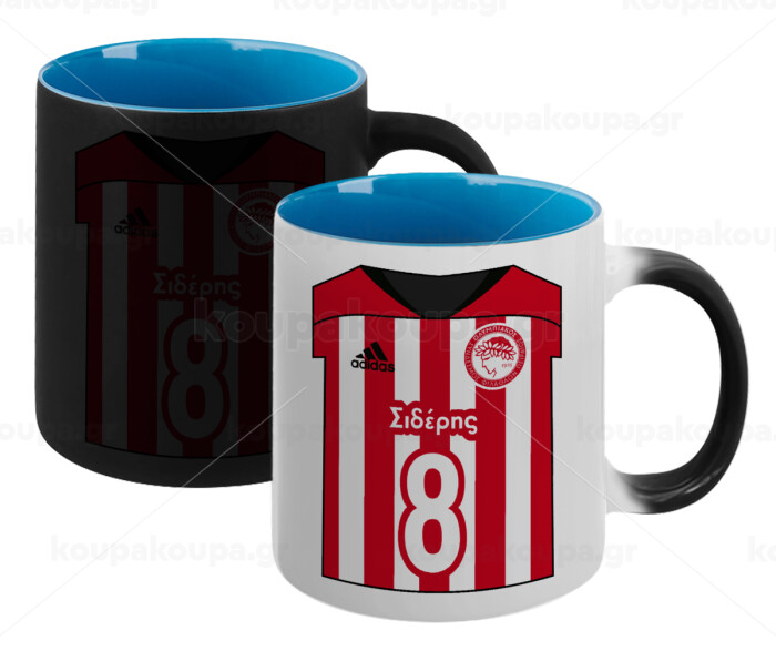 Ολυμπιακός εμφάνιση, Κούπα Μαγική εσωτερικό μπλε, κεραμική 330ml που αλλάζει χρώμα με το ζεστό ρόφημα